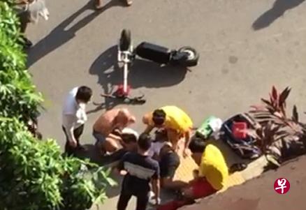 现场也有多名热心公众,在一旁提供协助,将倒在路上的电动滑板车移开。
