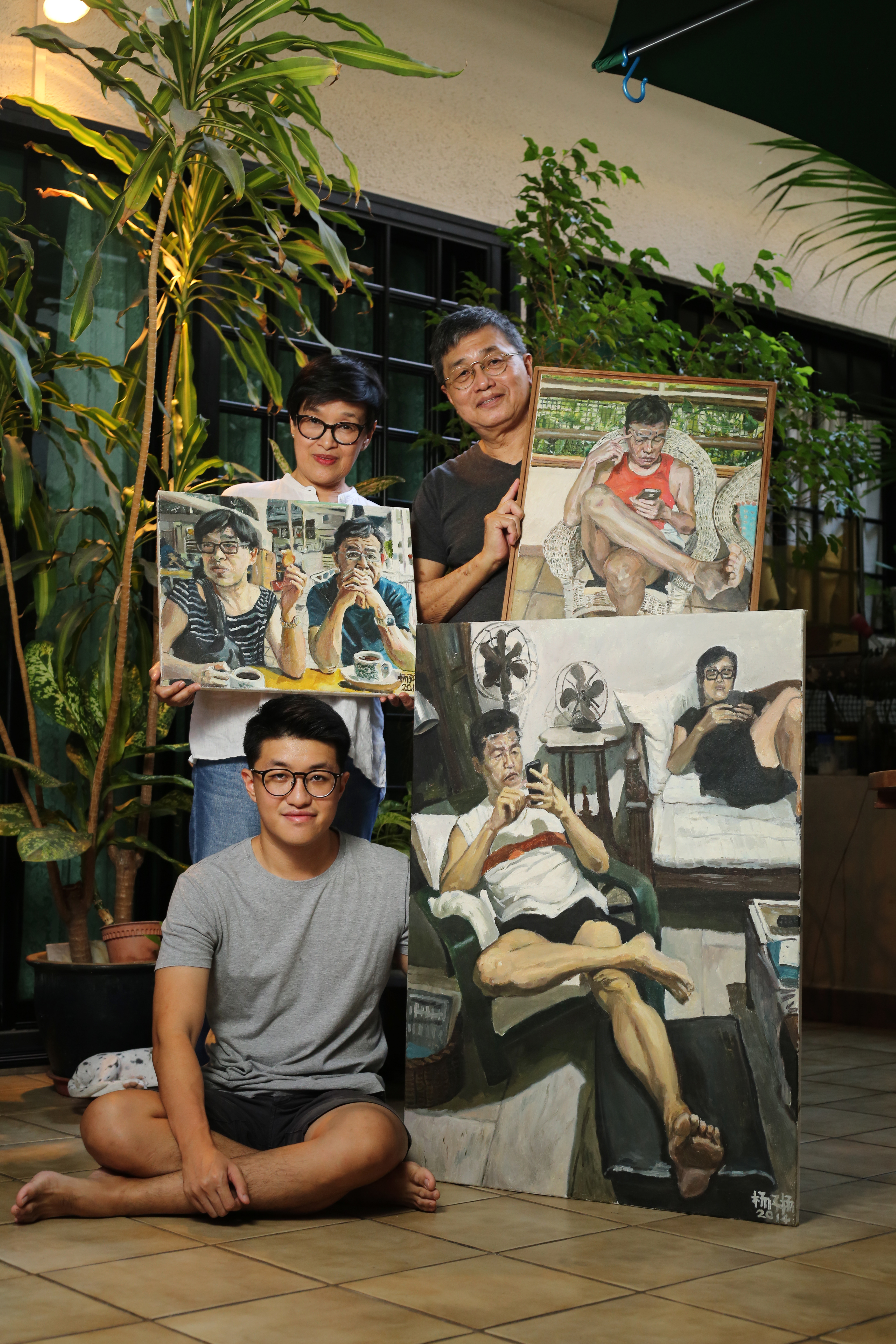 杨子扬在国大期间主修东南亚学,这看似与绘画毫不相干的专业,却对他的创作影响深刻。他的毕业论文也是写母亲10岁从马来西亚新山移民到新加坡的融入过程。成为全职画家后,家人也仍是杨子扬绘画的主题之一。