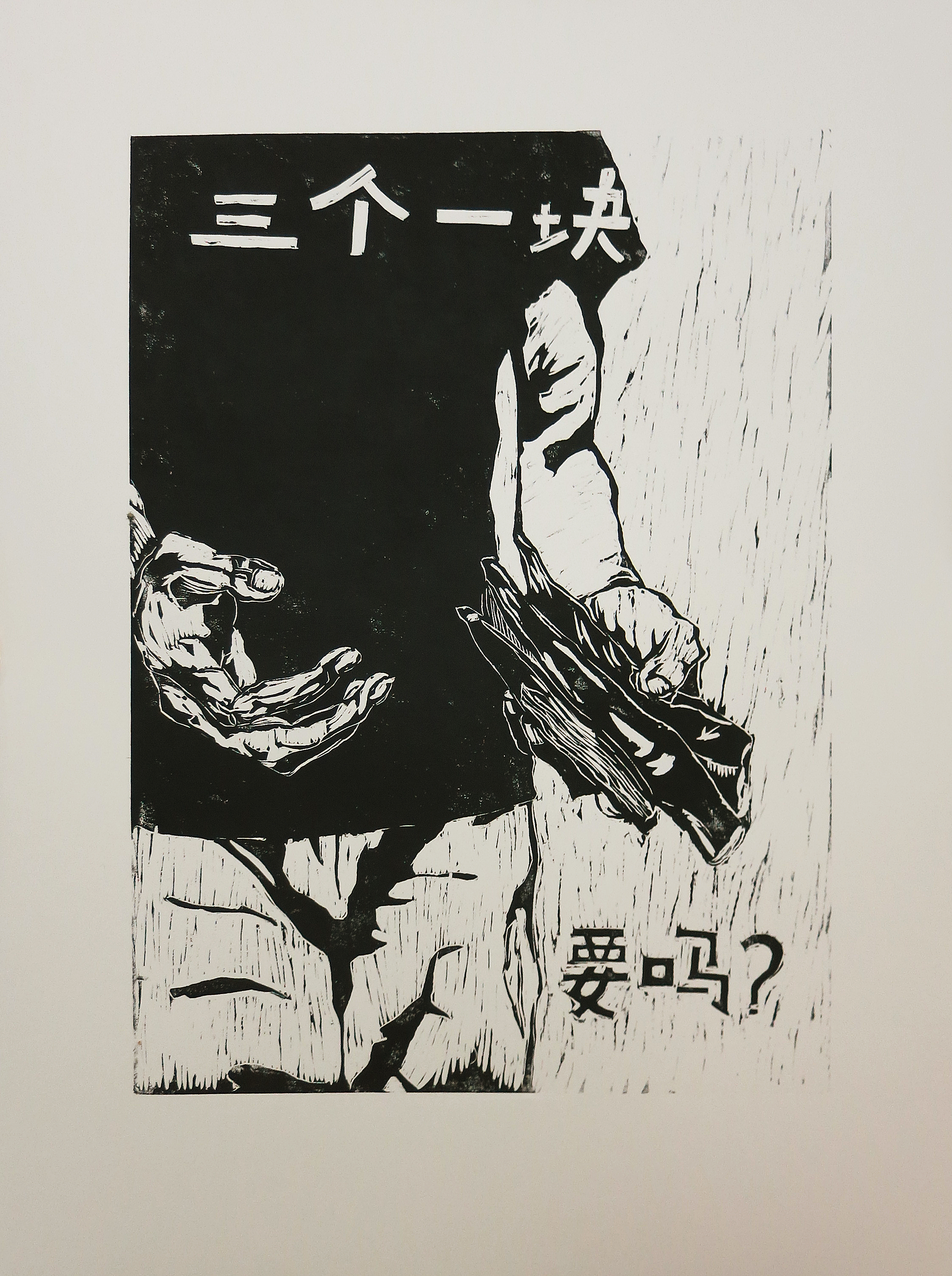 毕业于拉萨尔艺术学院主修版画的他,传承上世纪五六十年代社会写实画派,以黑白木刻版画直指社会现象,针砭时弊,传达现代生活的不确定性。不确定性也是他喜欢版画的原因之一。他认为,在木板上刻画作品,就如同和木板相互挑战,“有时是我挑战木板,或者说木板也是在挑战我。”