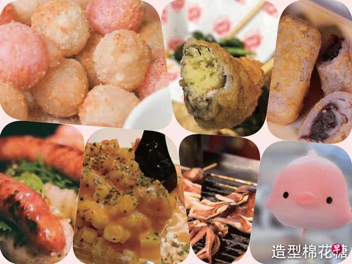 本地美食则包括芝士薯条、香辣炸鸡、烤苏东、韩国鱼形点心、迷你煎饼等。