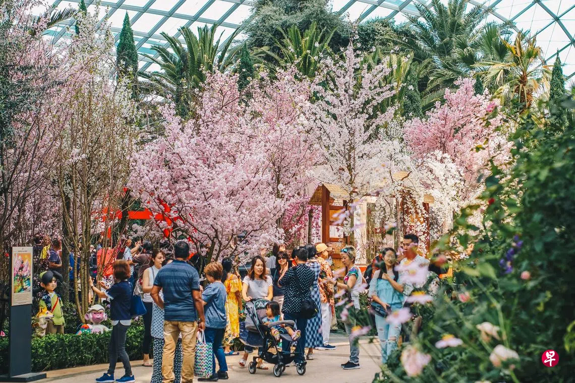 3月份是樱花盛开的季节,滨海湾花园将在3月份至4月份在花穹内呈献樱花花卉展,整个情景就如沿着火车路线一路观赏樱花盛开的诗意美景一般。
