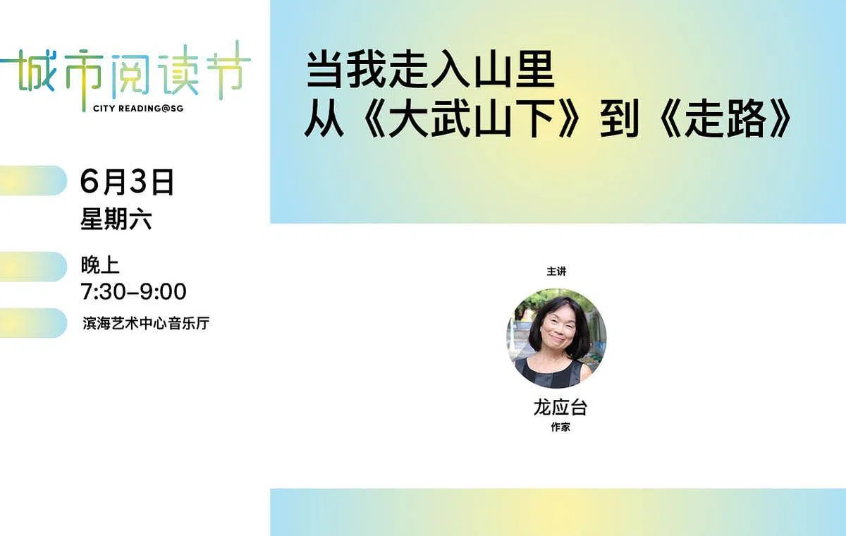 今年的压轴讲座请到了台湾作家龙应台分享她的两本著作——《走路》和《大武山下》,分享会题目为——当我走入山里。(点击此处报名)