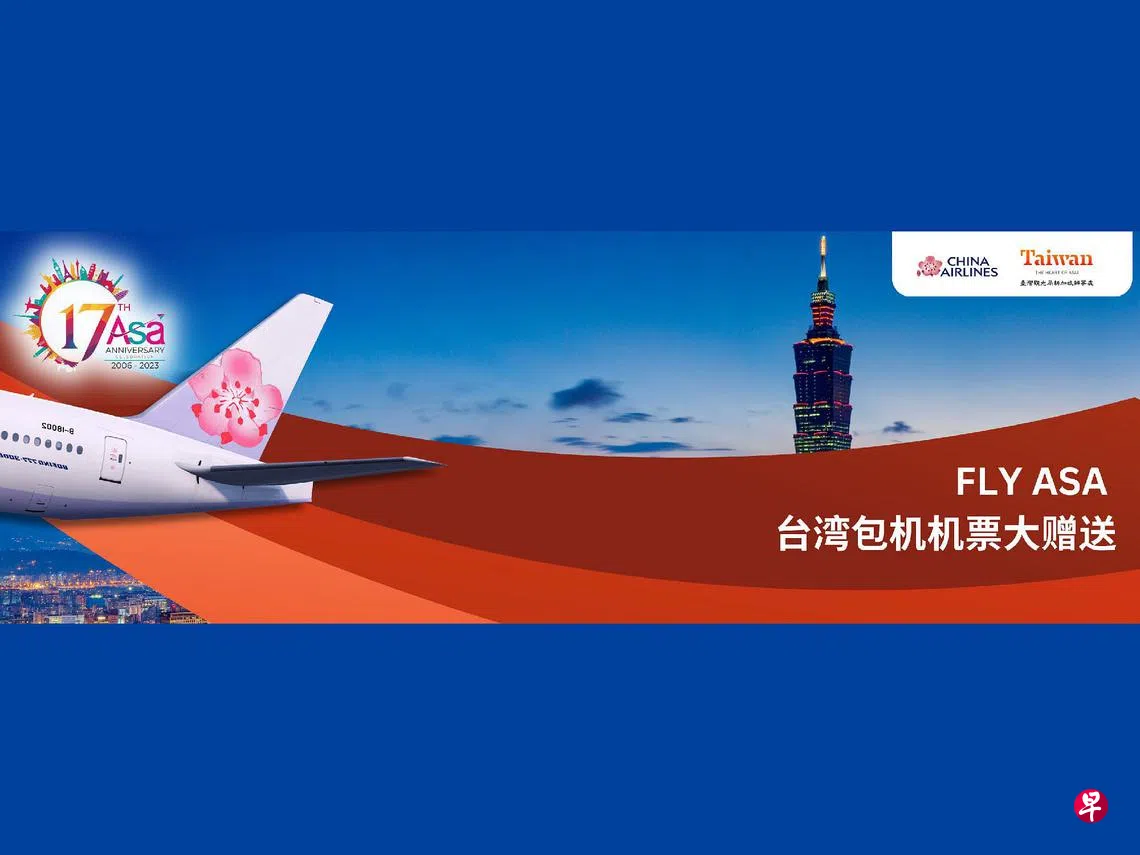 即日起至11月12日(星期日),早报会员点击链接,回答一道简单问题,就有机会赢得一对新加坡往返台北机票。10位幸运的赢奖者将最迟于11月14日(星期二)收到电邮通知。届时,早报俱乐部会通过电邮告知您领取机票的方法。