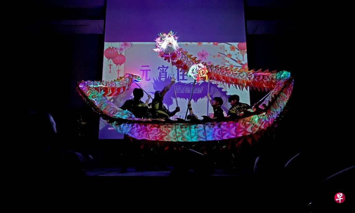 午宴除了美食也有演出。目前在南洋艺术学院修读戏剧课程的常熙雅(学生,19岁),当天带来京剧《天女散花》。她说,“我自10岁开始学京剧,今天的场合非常热闹,很荣幸有机会在场演出,跟大家一起庆祝元宵节。”