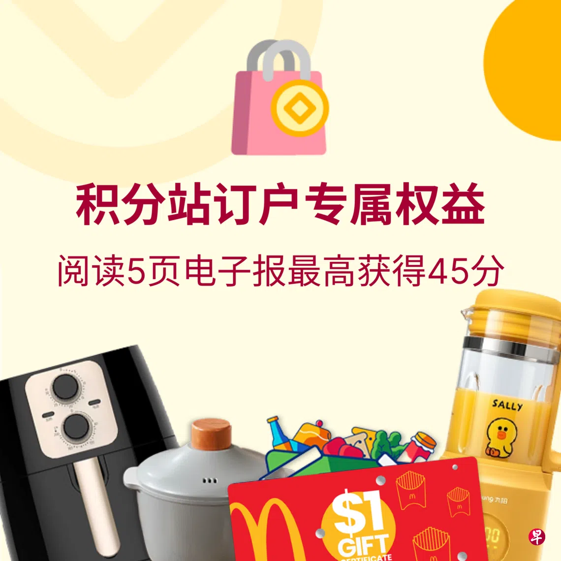 凡是订阅《联合早报》数码配套或数码配套个人版的订户,每日只需阅读五页不同的《联合早报》或《新明日报》电子报,即可轻松赚取45分。
