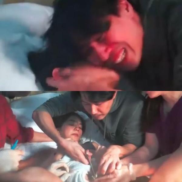 最初,她尝试在水中分娩,观众透过屏幕上她的痛苦表情以及低声呻吟,仿佛感受到她的疼痛。幸好赖斯翔一直陪伴她坐在水中,为她打气鼓励。S.H.E两个姐妹死党则全程紧张地站在她身边。