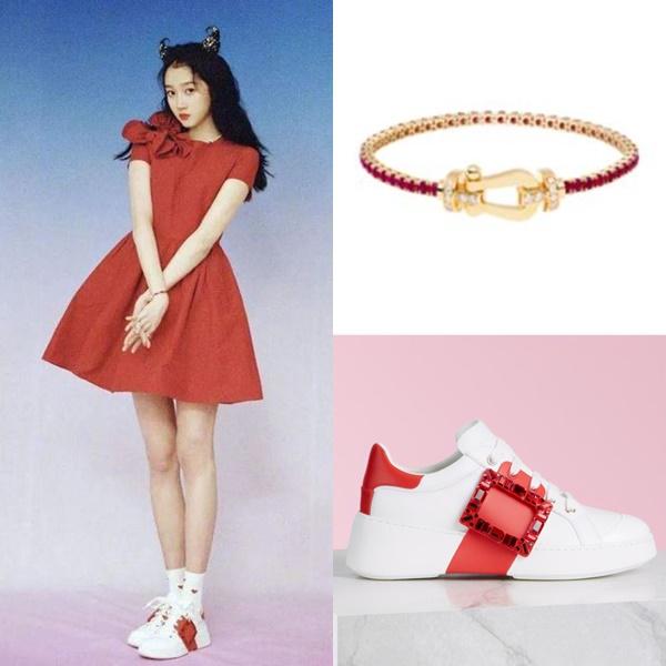 也是“小花”的关晓彤一身高级定制连身红裙亮相,头上两个闪亮牛角造型非常可爱,生肖属牛的她,手腕上带着一条名牌红绳手链,售价高达3万多新元,不知道和她本命年有没有关系。她戴上自己代言的奢华项链和耳环,后者总价约2万4000元。顺着她的两条大长腿看下去,观众发现她脚上那双有设计感的平底球鞋,也要2300多元。