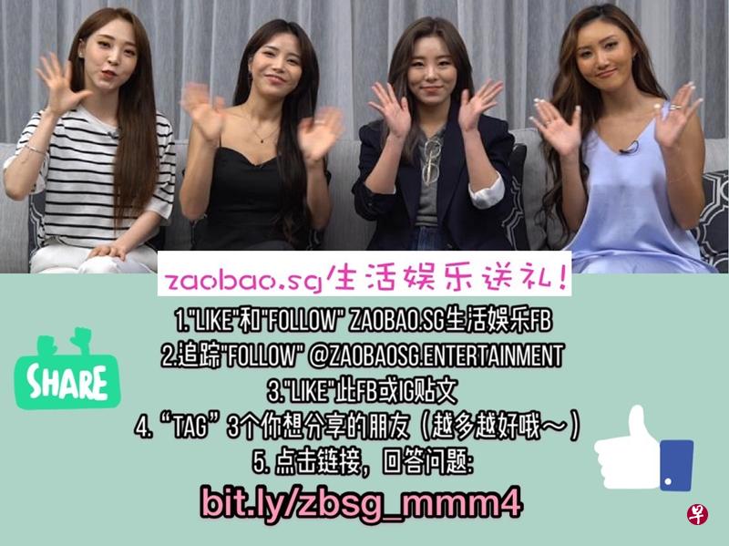 【送票】zaobao.sg要送幸运粉丝去看MAMAMOO“Hello MOOMOO!”新加坡粉丝见面会。参与以下问答,每人即有机会赢取两张门票。(截止日期:4月22日,中午12点)