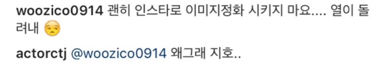 而好朋友Zico则留言:“别再用insta来净化自己形象啦...把小烈(李烈)交出来”,崔泰俊回复:“别这样啊智皓(Zico本名)...”