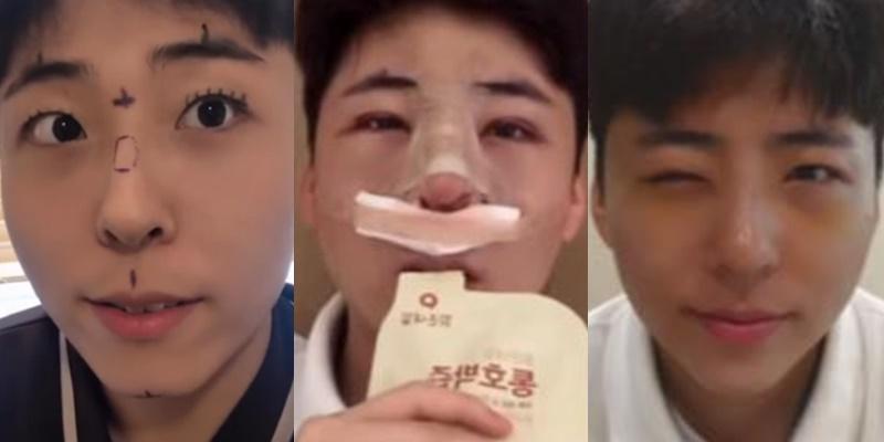 金敏瑞说这是他第一次做手术,有些紧张。手术后他只能吃比较清谈的食物,以免伤口感染。住院三天后,他就戴着口罩和墨镜离开了医院。第六天,他拆下全部的纱布,可见脸部仍未完全消肿,鼻子上也仍有肿块和淤青,所以他会继续记录复原进度。