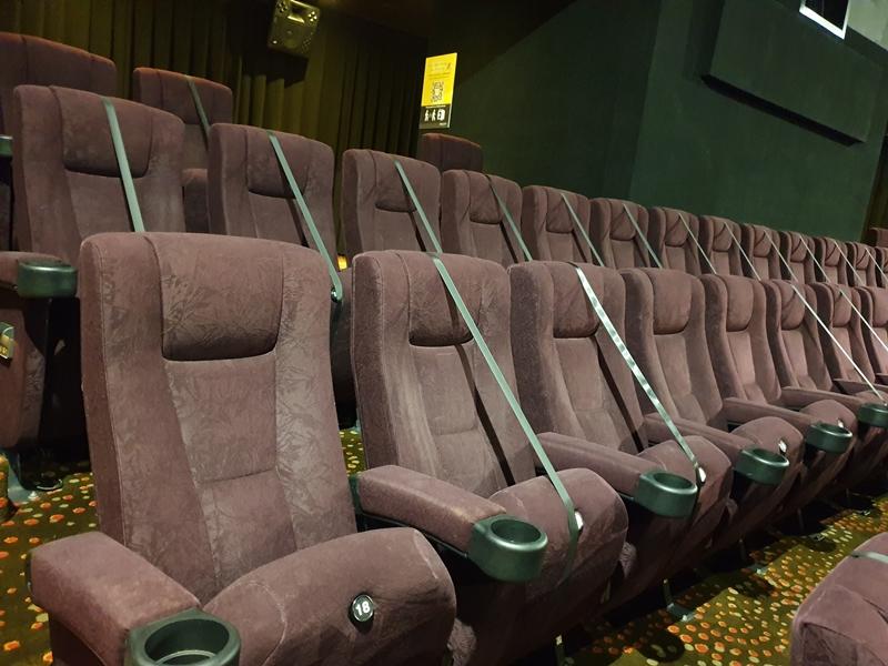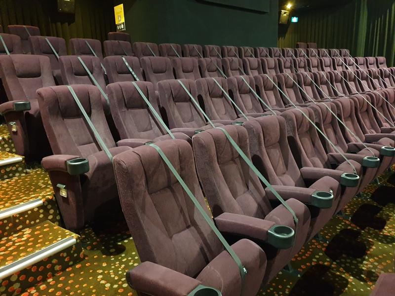 为了确保公众遵守规定且安全着想,除了购票系统限制能买的座位及数量,电影院如GV还将椅子放上禁止公众坐下的黑色带子,确保万无一失。