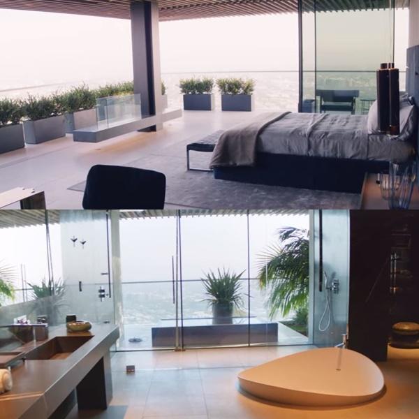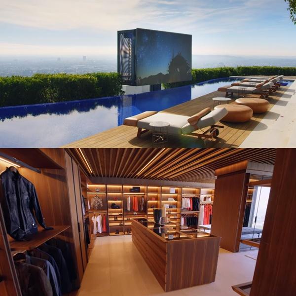泳池旁放置巨型电视机,可以边游泳边看节目。至于衣帽间,那是大到你永远有地方可以增添缺少的那件衣饰。
