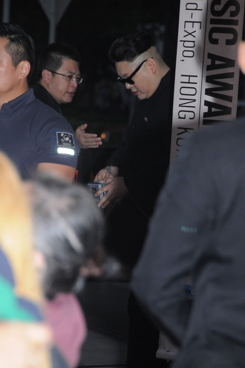 据港媒报道,在走红毯环节,发生一名扮成朝鲜领导人金正恩的男子,企图硬闯会场遭到保安人员制止,虽然该名男子称有颁奖礼门票,但还是被劝离。