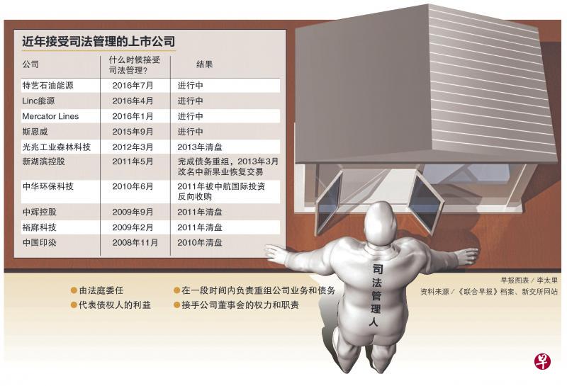 摩根路易斯—腾福(Morgan Lewis Stamford LLC)合伙人叶勇强和雷安智指出,司法管理的一个好处是上市公司可以出售上市地位或通过反向收购,注入新业务和资产,从而为债权人提供更多价值。上市公司若清盘,往往无法转让上市地位或被反向收购。