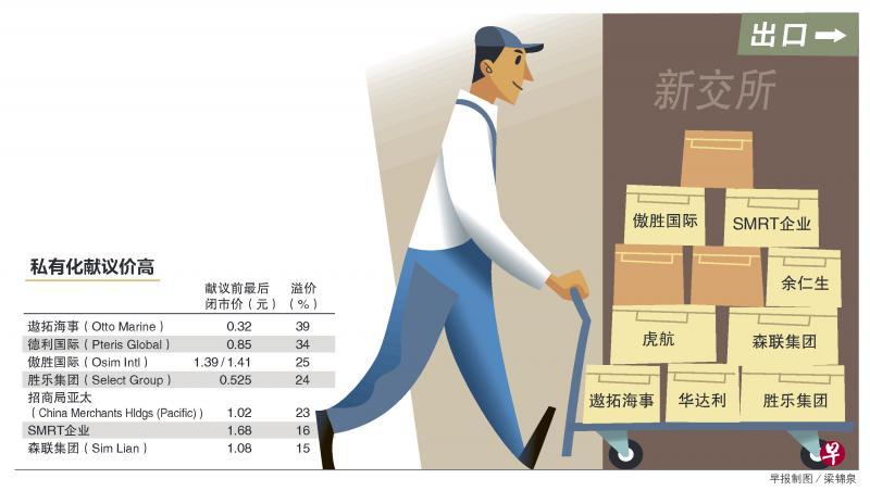 除牌和私有化活动今年火热,淡马锡控股以近12亿元全面收购SMRT企业,再连同余仁生家族成员等人组成财团收购余仁生;2分股息造成混淆,傲胜国际把献议价从每股1.39元调高至1.41元,成为今年私有化的精彩插曲。