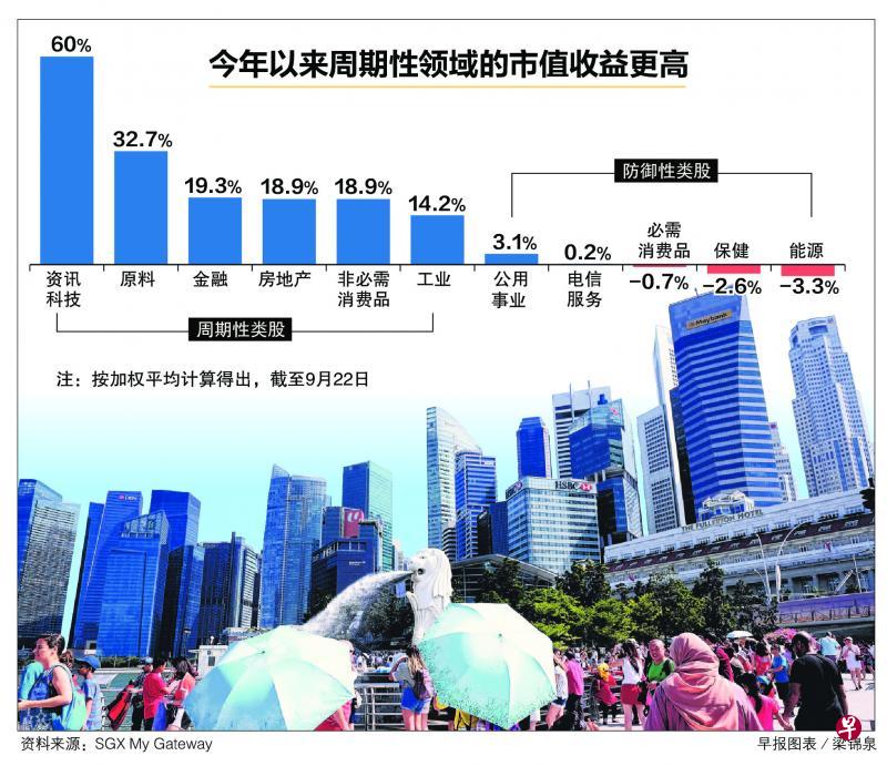 根据新加坡交易所投资者教育网站My Gateway的报告,今年以来按加权平均价取得的市值收益来看,资讯科技股飚升60%,原料股起33%,金融、房地产、非必需消费品类股也涨近20%。虽然股价已上扬许多,但分析师仍看好金融、房地产和博彩股的增长空间。