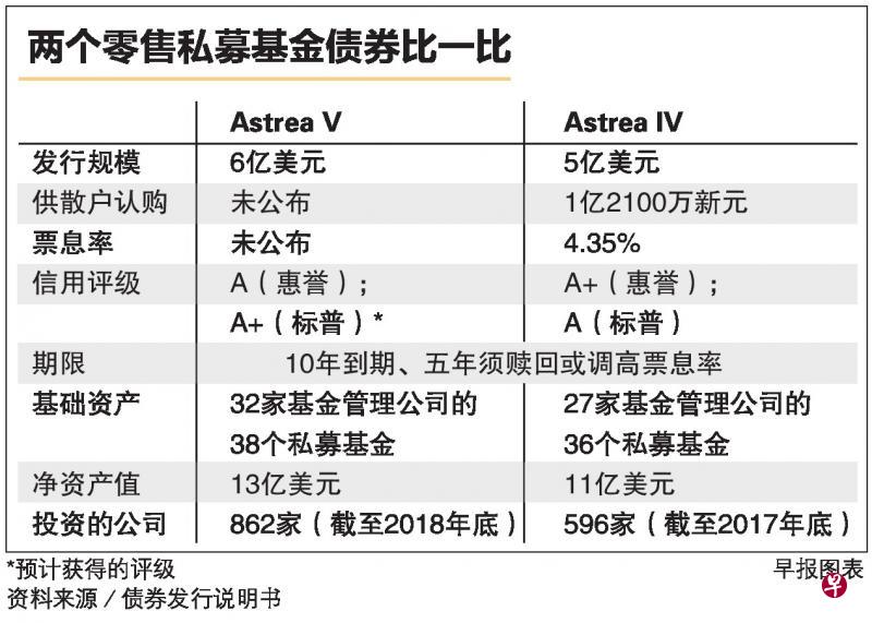 根据公司昨天提呈给新加坡金融管理局的初步说明书,这批Astrea V私募基金债券发行总额为6亿美元(8亿3000万新元)。