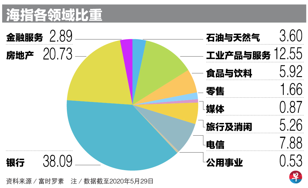 成份股对海指的影响力,取决于它们的市值和自由流通比率,因为它们在海指的比重,是根据这两个数据来计算。市值最大的股票,例如银行股和电信股,在海指的比重自然就远大于其他成份股,因此对海指的涨跌走势有举足轻重的影响。