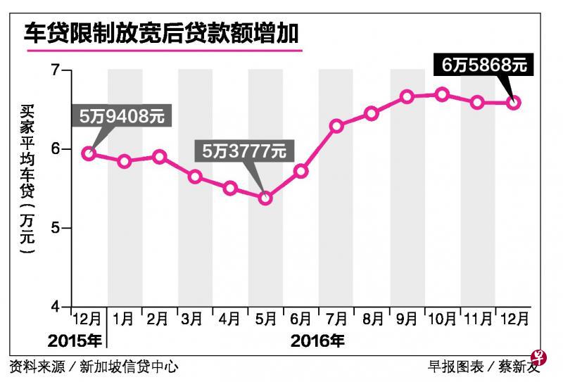 新加坡金融管理局去年5月宣布放宽汽车贷款限制,允许买家向金融机构借贷相当于车价60%至70%的款额,贷款比率较之前增加10个百分点,贷款偿还期限也从五年延长至七年。