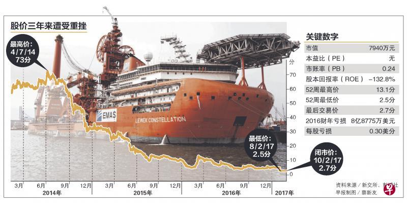2007年,以斯拉的股价曾上扬至近2元的高位。过去两年多来,股价却随着油价一路低走,从2014年7月的0.73元重摔至本周三的2.5分。在市场看来,这或许是油气、岸外和海事的巨星殒落又一例,但对股东和债券持有人来说,却是心里沉重的痛。