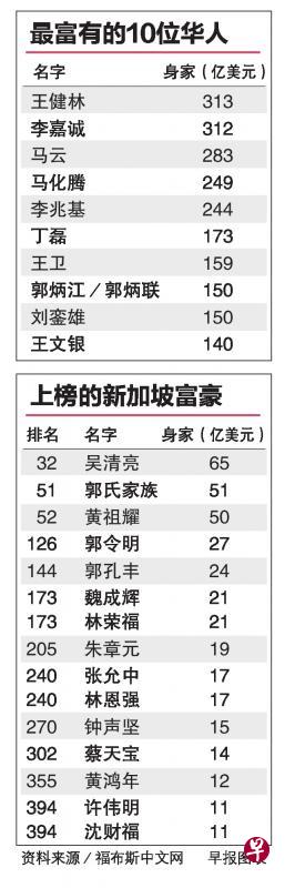 新加坡12富豪上榜