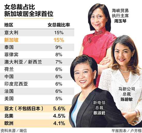 瑞士信贷(Credit Suisse)周五(11日)发布一份调查全球企业性别多元化的报告,新加坡和意大利企业的女总裁占比并列全球最高。