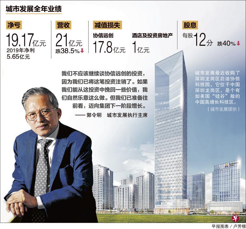 这使得协信远创投资成了业绩发布会上的焦点,分析师和媒体约40分钟都在询问该投资相关问题,以致城市发展执行主席郭令明忍不住发言。他解释,集团基本上是注销协信远创投资,这投资项目可说已“告一段落”,暗示着集团已做好投资不回本的最坏打算。