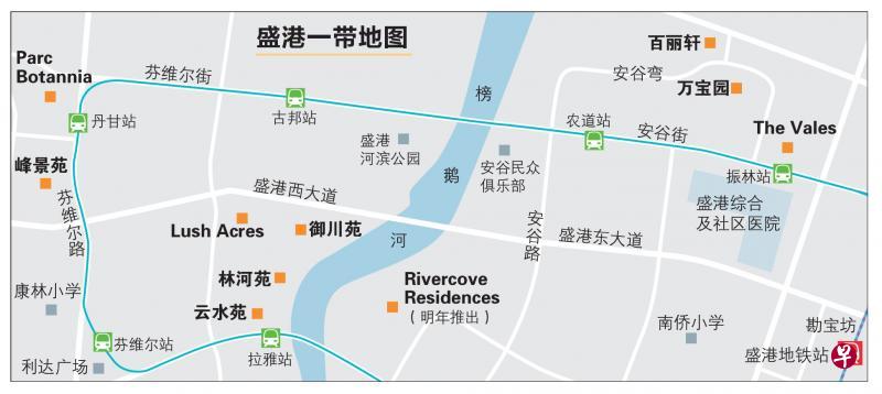 盛港一带的私宅项目不多,几乎都是规模超过500个单位的大型公寓,譬如位于榜鹅河畔的御川苑(Riverbank@Fernvale)和林河苑(RiverTrees Residences)。这两个项目都在2014年2月推出,今年上半年卖完,平均尺价也相当接近,都在1050元左右。