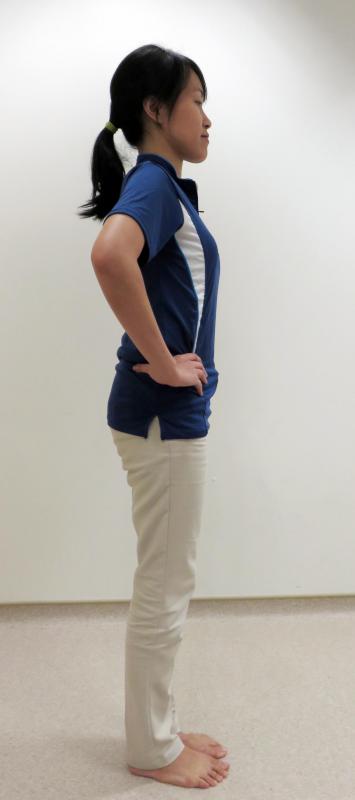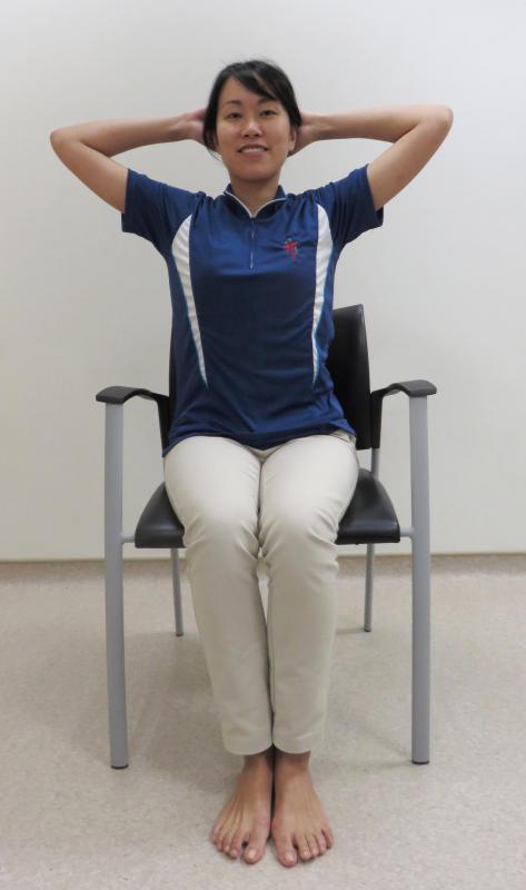 1a、坐在固定的椅子边缘,双脚保持肩膀宽度;双臂轻托后脑。
