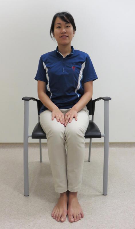 2a、坐在固定的椅子边缘,双脚保持肩膀宽度。