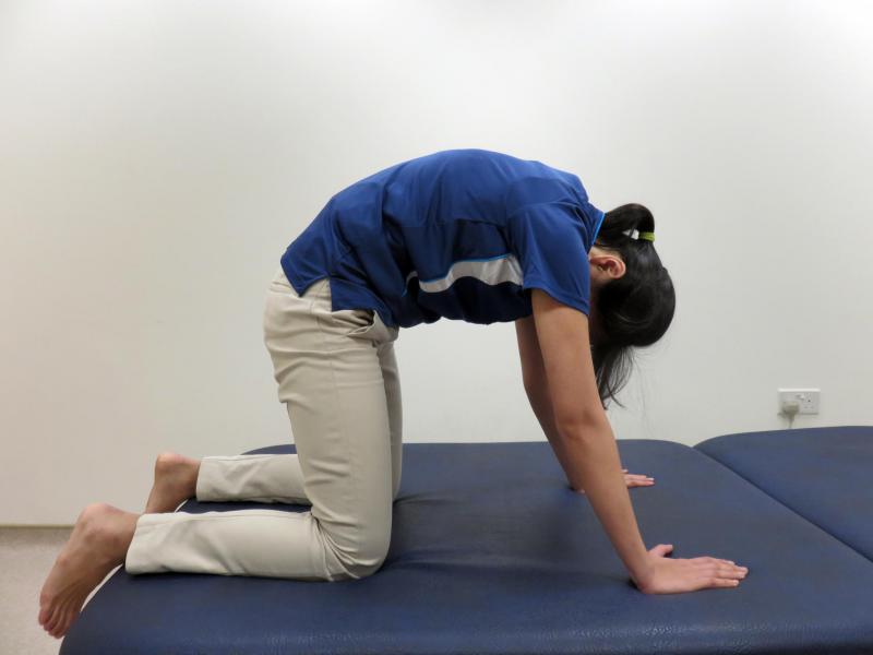 4b、让肚子放松,仰头看向前方,直到胸口朝向前方。重复10次。