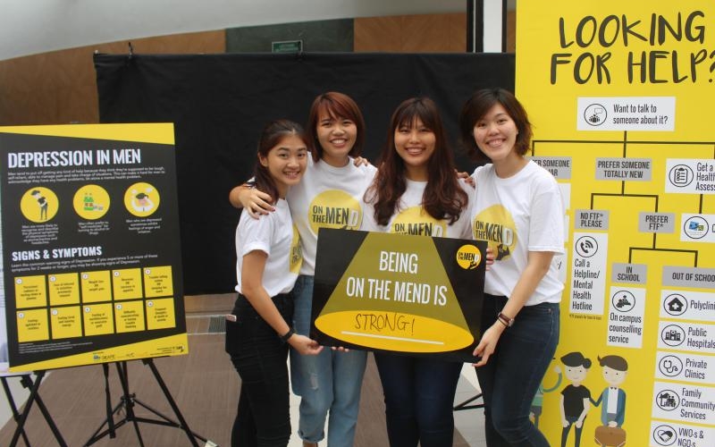 为了鼓励更多忧郁症男患者求助,南洋理工大学黄金辉传播与信息学院四名大四生:谢家玲、朱欣怡、王雪婷和陈皓韵,策划了公共教育运动:On the Mend(“康复中”)。这是他们的毕业年企划。