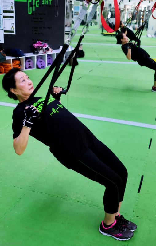 不出国的日子,她每隔一两天,一个星期四次到The System Gym健身中心锻炼。健身中心的教练潘为人是她追随了十多年的资深教练。她看着教练从小伙子变成馆主;教练看着她一年比一年年轻,许多中年半途开始运动的学员视她为模范。