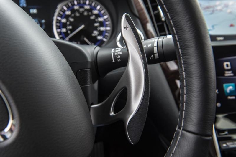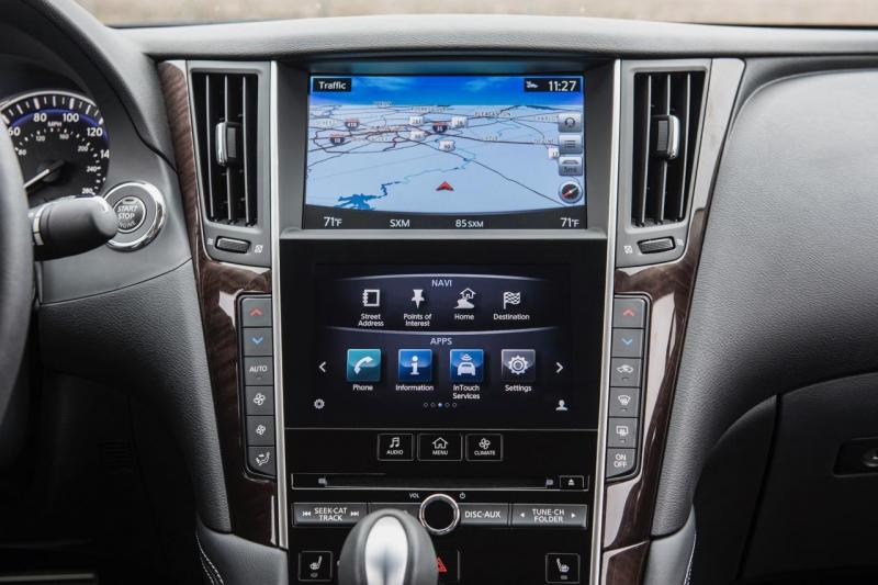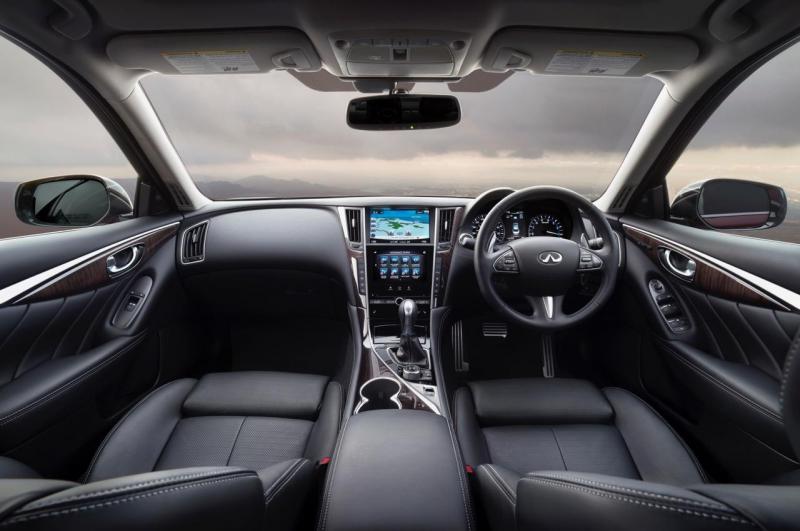 车室的内饰设计基本延续了普通版车型的风格,中控台采用了大尺寸的Infiniti InTouch多媒体资讯整合系统,采用上下分屏式设计并支持多点触控。两块显示幕把资讯显示和功能操作分开,上半部的屏幕可显示导航和倒车影像等信息,下半部的屏幕则显示多媒体信息、行车电脑信息等。新车采用了金属踏板,一键式启动、驾驶模式选项等配置。