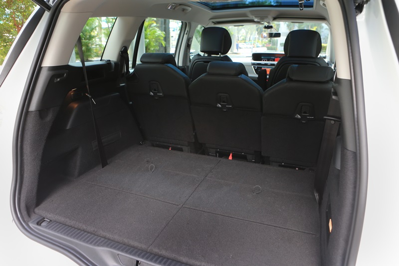 第二排座椅有充裕的乘坐空间,头部和置腿空间都犹有余裕,车顶的全景天窗为宽敞感加分。要进入第三排座椅不难,只要拉一拉便可折叠第二排座椅,不过第三排座位的空间较适合儿童乘坐,成人乘坐的话,则过于狭窄。如果把中排和后排座椅折下,行李厢有2181公升的巨大空间。此外,只要把脚放在车后保险杠底下,后车门便会自动开启或关闭。