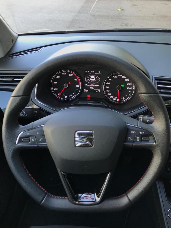 内饰主要以黑色塑料材质打造,设计简单典雅,悦目舒心,没有上一代那么有个性。上一代的Ibiza FR,从两侧望后镜到冷气出风口边缘到安全带,处处都是鲜红色,突显其小跑车特性。新Ibiza FR版本只在座椅、手刹车、方向盘等皮革包裹处绣上红线,整体感觉比较低调。