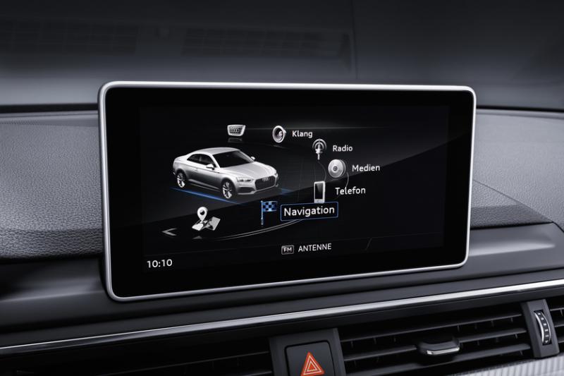 车内最大的亮点是仪表板已经完全数码化,就像其他新一代奥迪家族车成员逐步配备这个新的装置,通过驾驶盘上的控制钮可以变换仪表板的显示状态,比如可将车速表放大缩小,而当启动导航系统时,整个仪表板可以变成导航显示,这样一来司机就不必将目光转向左边的中控台屏幕,因此,能专注前方。中控台的12.3英寸TFT屏幕是操控中心,从车内音响、导航、驾驶模式,到手机操控等都在此处显示,可通过中央手枕部分的操控圆钮控制。