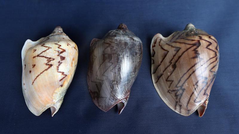 贝壳有毒吗?许来平说,多数没有,只有肉食的芋螺科(Conidae)才有毒,它靠近猎物时能在几万分之一秒内射出毒镖,曾在菲律宾杀死很多渔夫,采集时得格外小心。