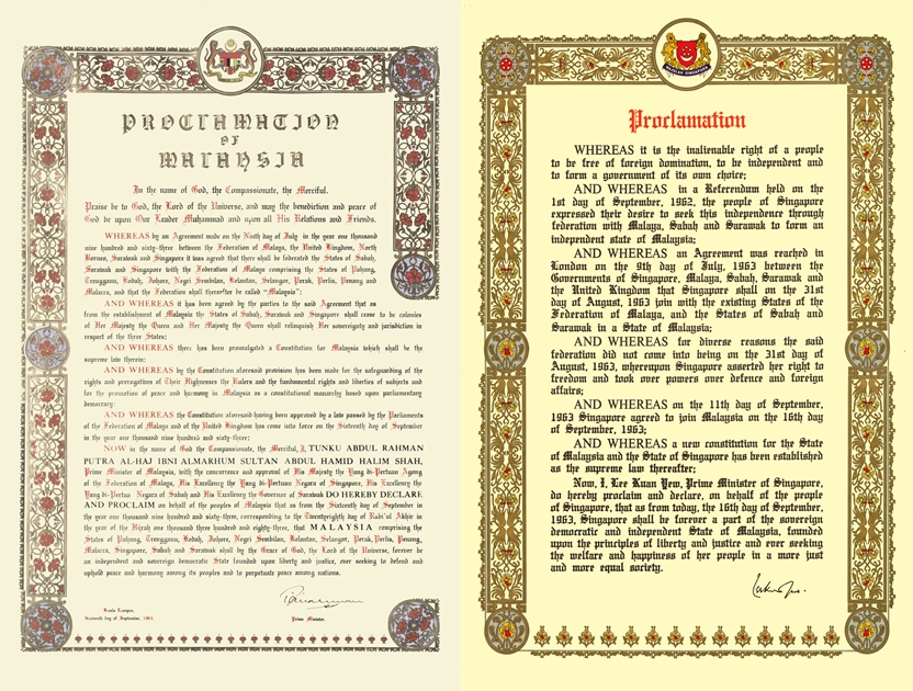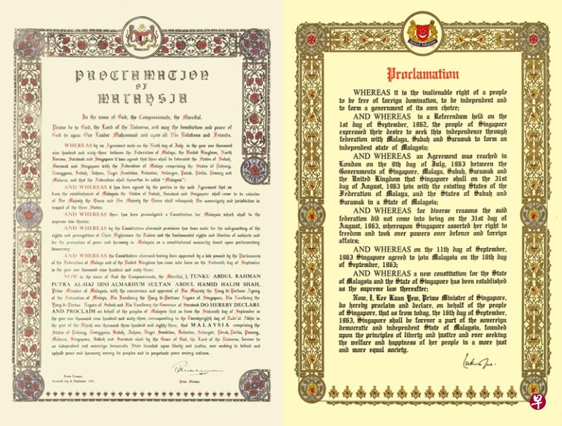 记录合并的《并入马来西亚宣言》《成立马来西亚宣言》