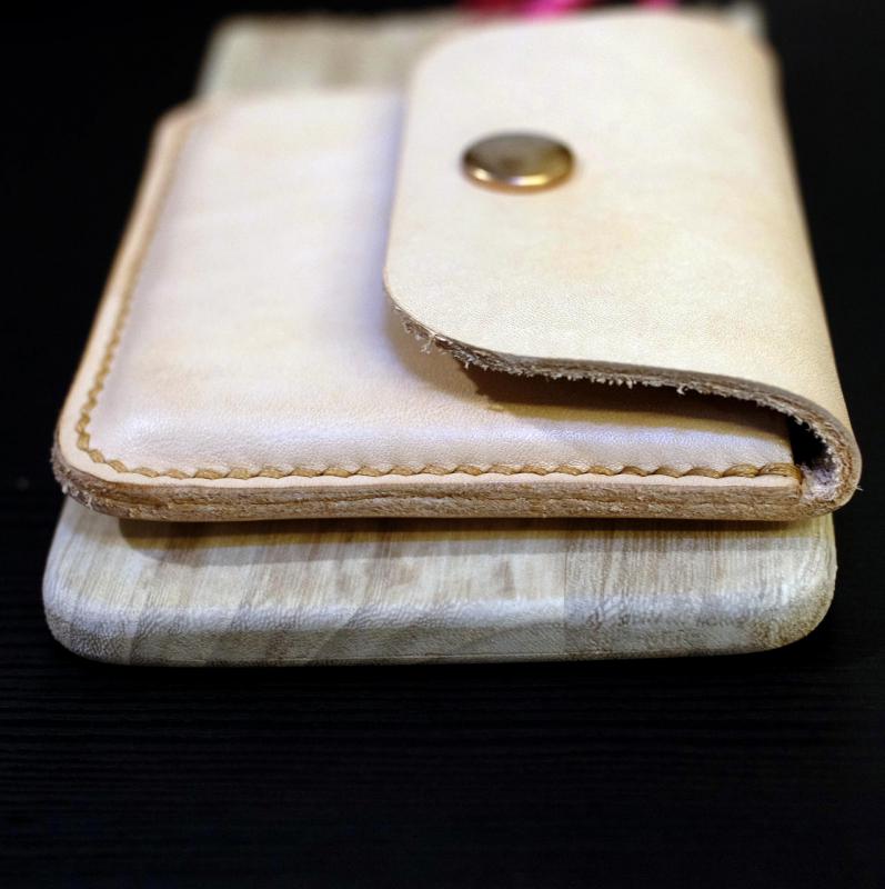 他靠看书、上网找视频自学,误打误撞地摸索出窍门:“每次遇到难题时——怎么让厚皮革折弯,怎么让两片皮革边角完美地接上——我都会不眠不休地找出解决方法。有次我做出个皮包,放在地上时却看起来歪歪斜斜的,问高人又问不出,我后来上网找到方法——用皮胶将两块皮固定好才打洞,就能做出完美的缝线。”
