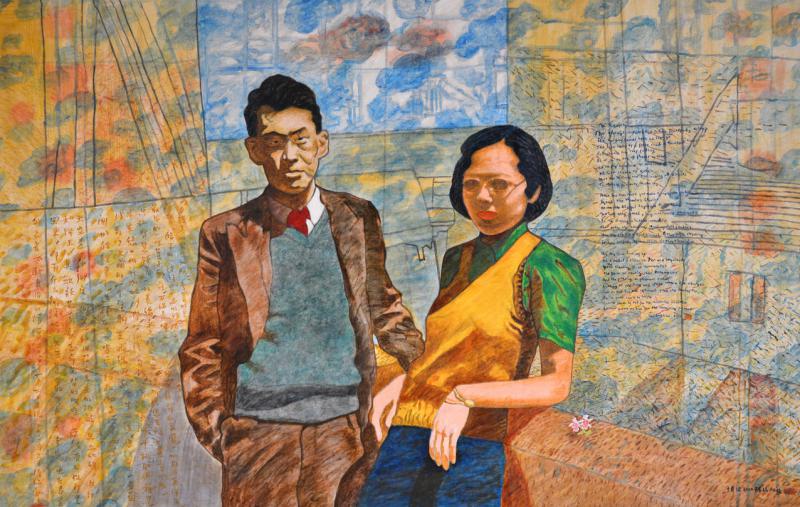 陈瑞献将作于2014年油胶彩墨画《情侣——李光耀伉俪画像》捐赠国家图书馆。