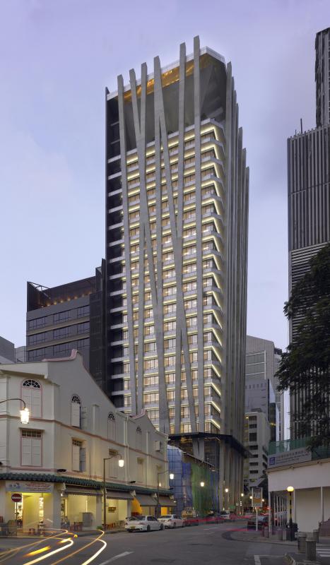 东京海上办公楼的建筑师陈守仁跟他说起设计的概念——将笔直的骨架暴露在外,形成基座,把建筑像一颗宝石般镶嵌在内。锐才与团队以这为起点,发现建筑伫立于麦卡南街(McCallum Street)与丝丝街交界尾端,必须将直竖的骨架变成桁架才能抵抗风力。他们将土木工程融汇设计思考,最终大楼暴露的骨架造型,像随风摆动的竹林,实质却稳如泰山,为原本的设计美学大大增值。