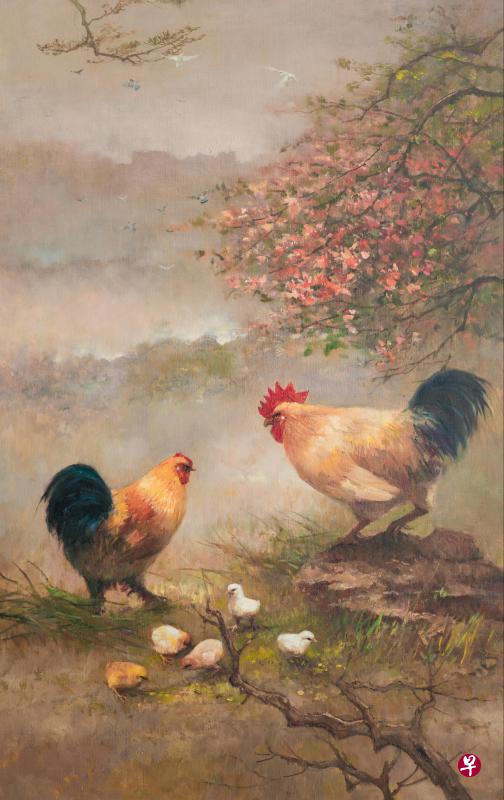 本地油画中鸡题材不常见,以前曾有德士司机把买家载到朱家,碰运气看能否买到鸡画,结果如愿而归。