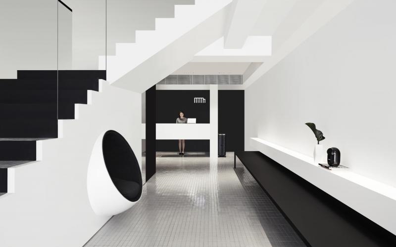 为了不让住客感觉被困在黑白框架内,曾国栋采用暖色灯光和些许粉色,为黑白注入血肉。大堂嵌入墙壁的圆球黑椅向花样年华的1960年代家具致敬,专为千禧世代住客而设。柯志文预计它将成为酒店在社交媒体上曝光率最高的其中一角。