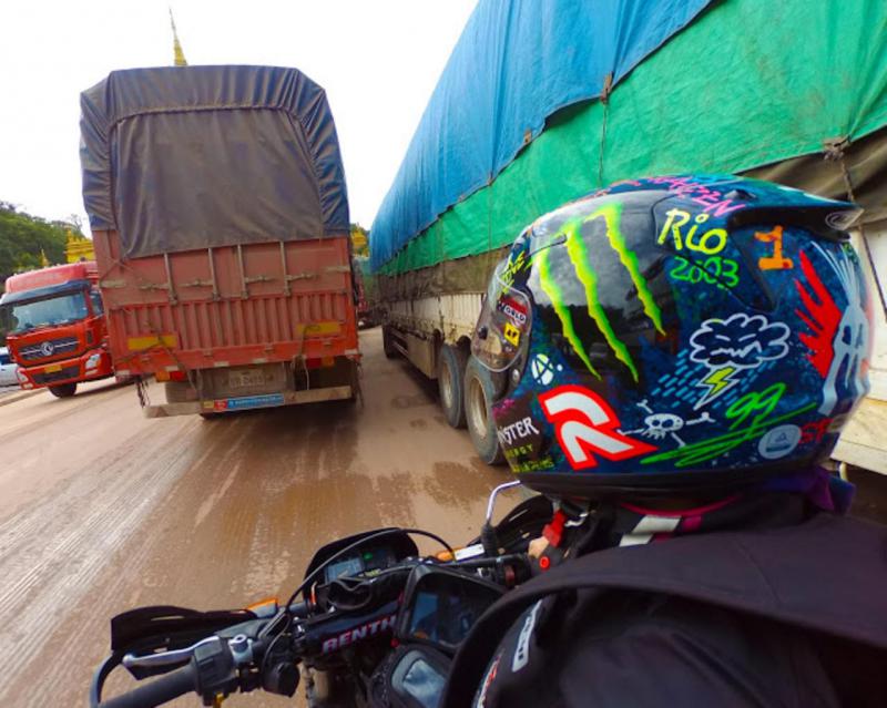 向导都有自己的车子,但并非和潘盈升一起行驶,而是事先说好会在哪里会合,接着就各走各的。电单车的速度较快,所以都是潘盈升在前,向导在后,直至每个检查站的前10公里左右,双方才集合并一起抵达检查站,以便顺利过关。