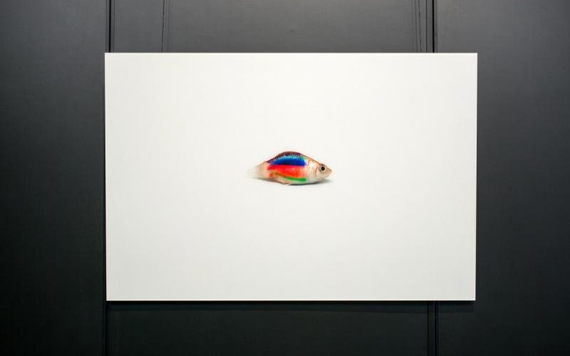 最近在侨福当代美术馆举行的“鲨鱼与人类”展览,赵仁辉是三名受邀的新加坡艺术家之一,展出的彩虹鱼摄影作品饶有意思。他说,像彩虹鱼这样的观赏鱼,是人工加色而成,这是人类对自然界所做的荒谬、不可思议或破坏性行为。