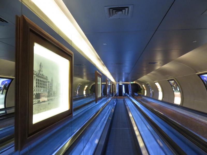 红灯码头有直通富丽敦酒店的地下走道,从地面可搭电动扶梯,接着走入富丽敦文物廊(Fullerton Heritage Gallery),浏览酒店历史与相关文物,以及酒店和集邮馆联合制作的历史地图。踏上自动走道,旁边有许多珍贵旧照。为了看仔细,来回走了好几遍。