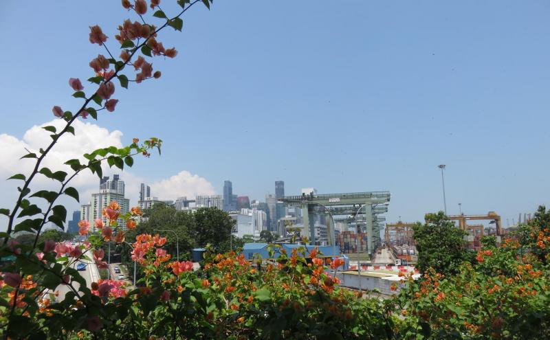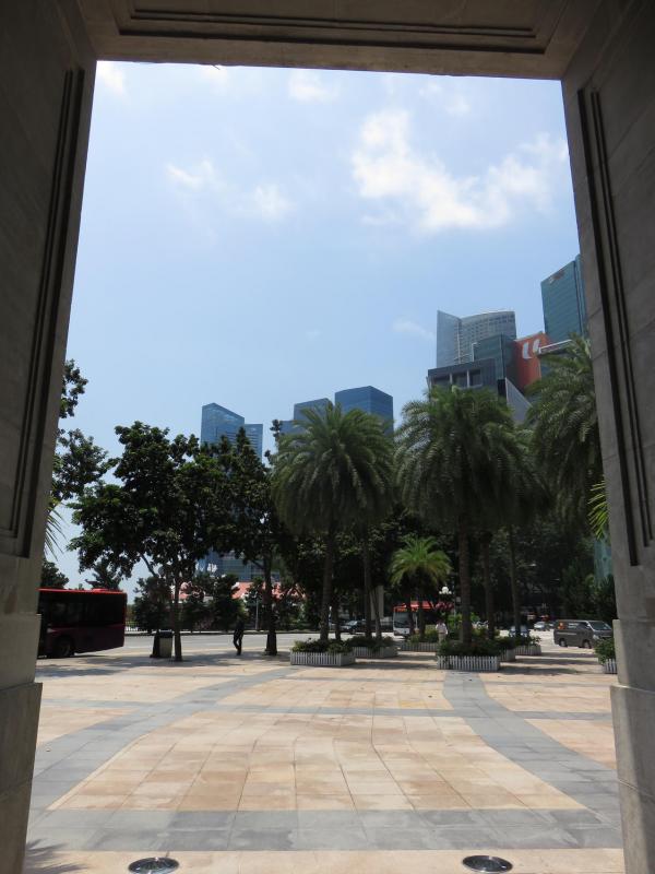出站后沿着Bayfront Avenue直走,往右望是金融区的高楼大厦,左边却有不被打扰的绿地,早晨散发阵阵清新草香。
