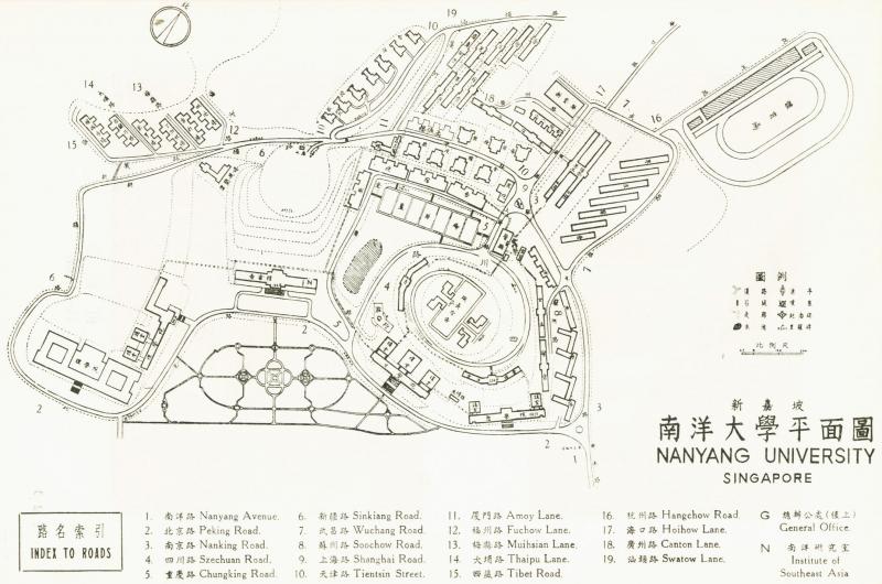 第一次见到这张刊于1961年的校园地图,作者心中有莫名的感动。南大对于中国和马来亚的双重认同,定格在图上标注的道路与建筑名称。在全球各地大学争当“世界一流学府”的今天,眼见南大老校园景观在不断的扩建改建中被蚕食、被边缘化,作者不免感到困惑:我们能为未来留下什么?