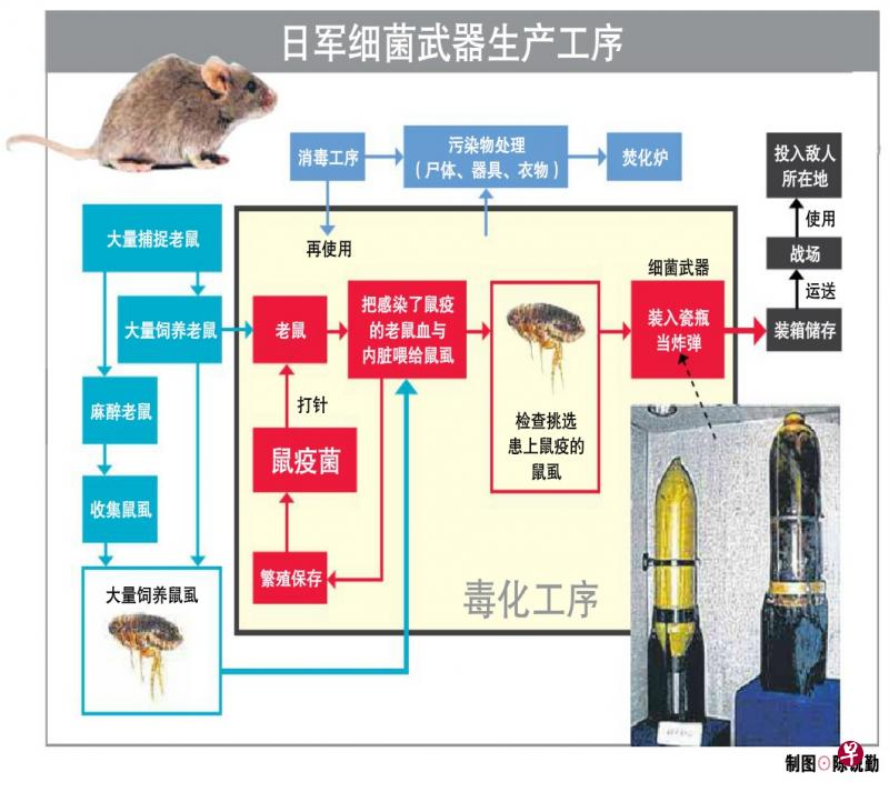原来,臭名昭彰的杀人恶魔731部队(日本帝国陆军在中国的关东军防疫给水部本部的通称,部队长是石井四郎军医少将),在1940年6月4日,偷偷地在中国吉林省农安上空以军机低空以洒农药的方式,投放5克的鼠疫细菌,害死607人。跟着在10月4日,又在浙江省衢县投放8000克鼠疫细菌,害死9060人,获得了 “满意的效果”。